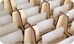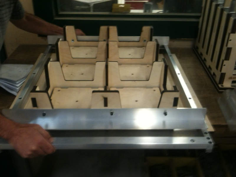 Sharples can provide fully assembled stackers or components for Thermoformers. When manufacturing a stacker, Sharples takes into consideration the geometry of the finished piece and the overall layout. A stacker can be created with as little as a mold file and/or molded sheet. All parts are laser-cut, milled or waterjet cut depending on the material and the application. Sharples offers the ability to create stackers with an array of materials including aluminum, steel, wood and some plastics. In recent years Sharples has developed and manufactured components to work with robotic stackers such as End of Arm Tooling. We work closely with mold makers and industry leading Thermoform Machine Manufactures to understand our customers specifications and requirements.